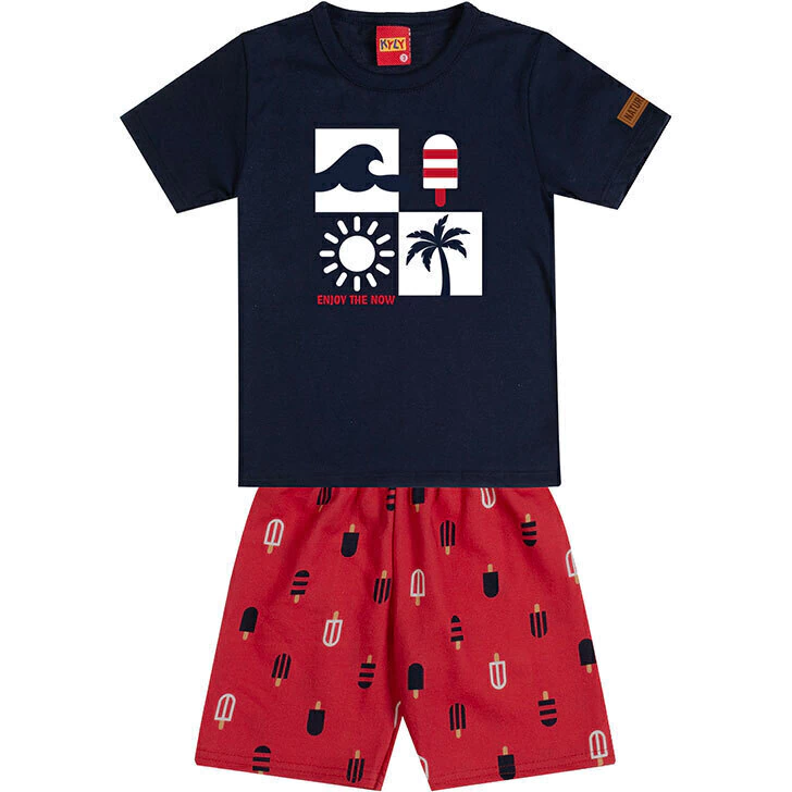 Invista em qualidade e estilo para o guarda-roupa infantil com o Conjunto Blusa Praia e Bermuda Kyly. Perfeito para garantir conforto e muita diversão nas estações mais quentes!
