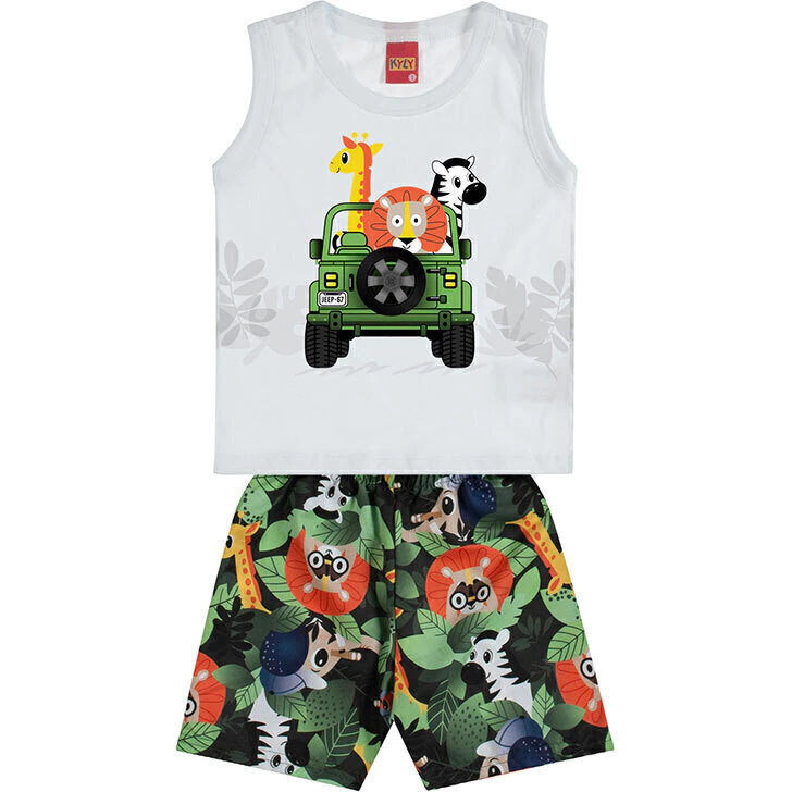 Surpreenda no visual e no conforto com o Conjunto Safari Kyly, a escolha certa para os pequenos exploradores!