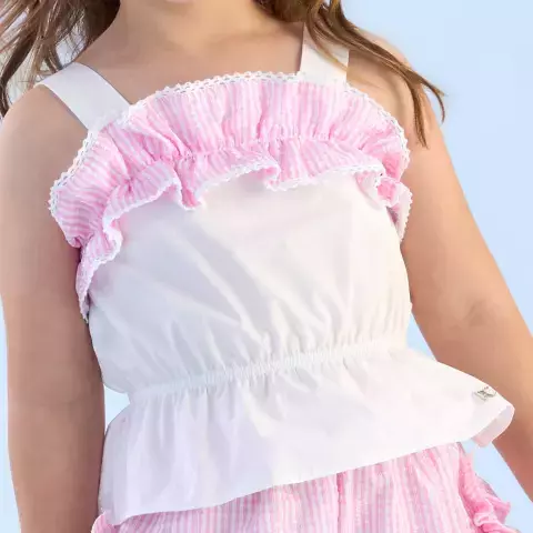 Delicado e cheio de charme, este conjunto é perfeito para deixar as pequenas ainda mais estilosas! A blusa traz um toque romântico com detalhe em babado xadrez rosa e acabamento em crochê, combinando perfeitamente com o short xadrez rosa, que também conta com babadinhos na barra, garantindo leveza e movimento ao look.