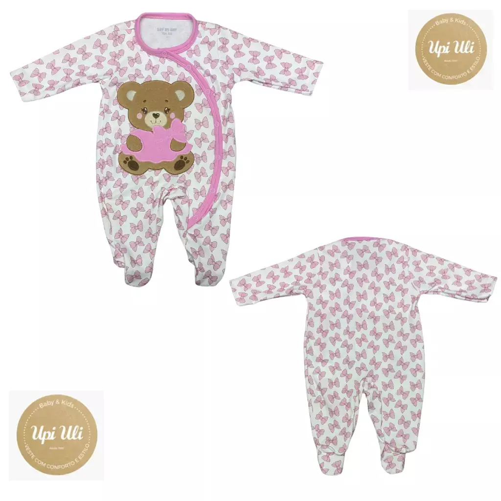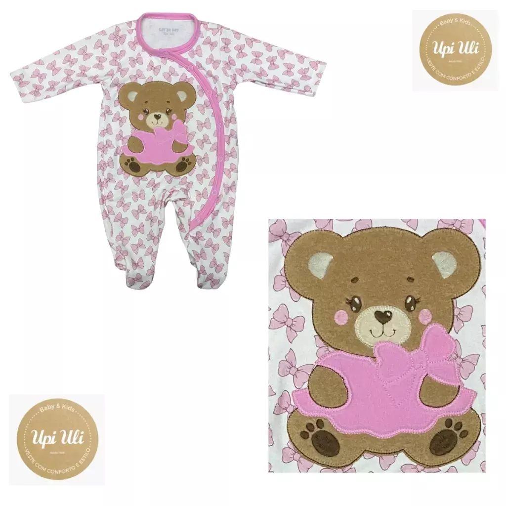 Macacão Bebê Suedine Menina Ursa Laço Upi Uli