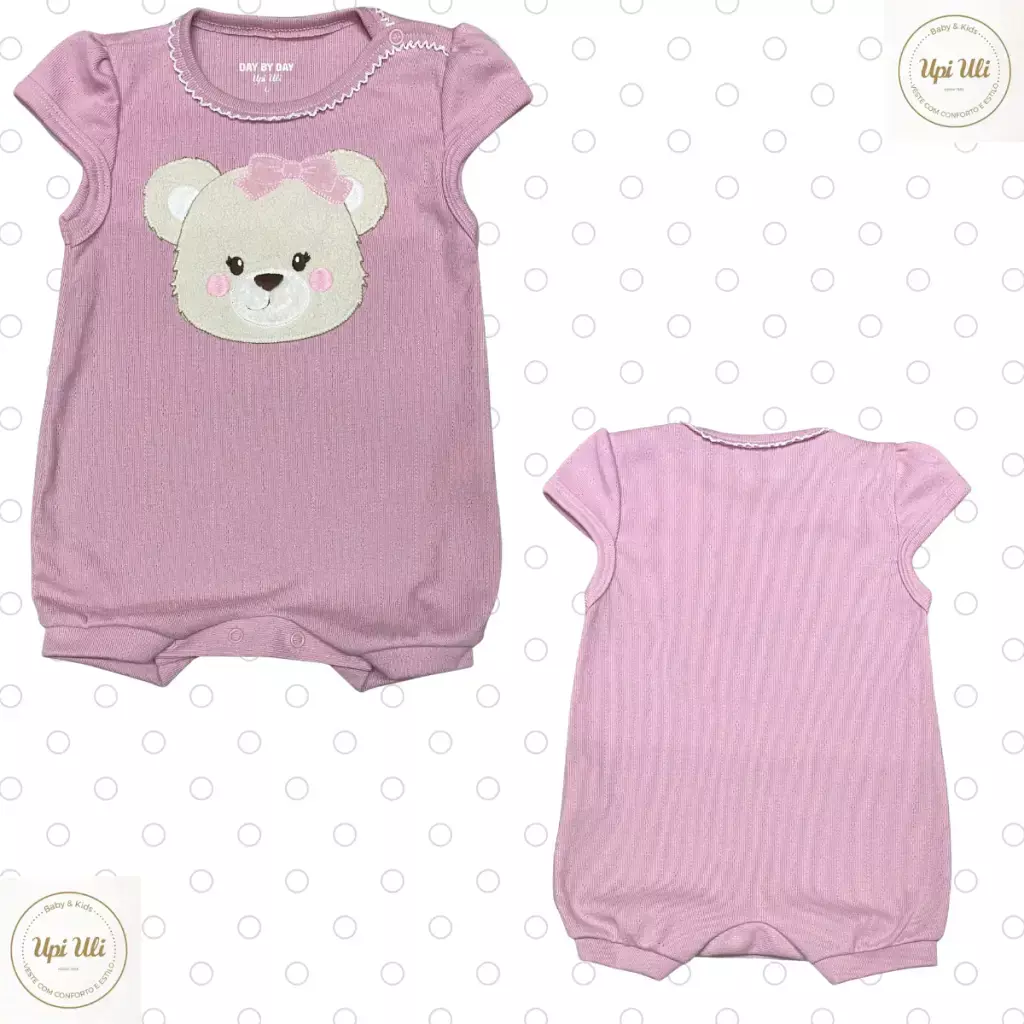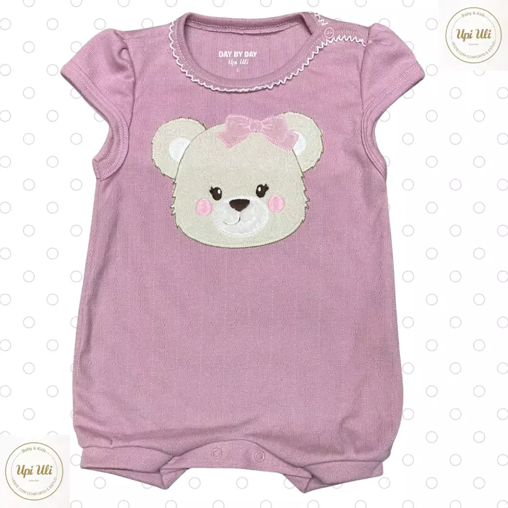 Macaquinho Curto Bebê Malha Bordado Rosé Ursa Feliz Menina Upi Uli 2555