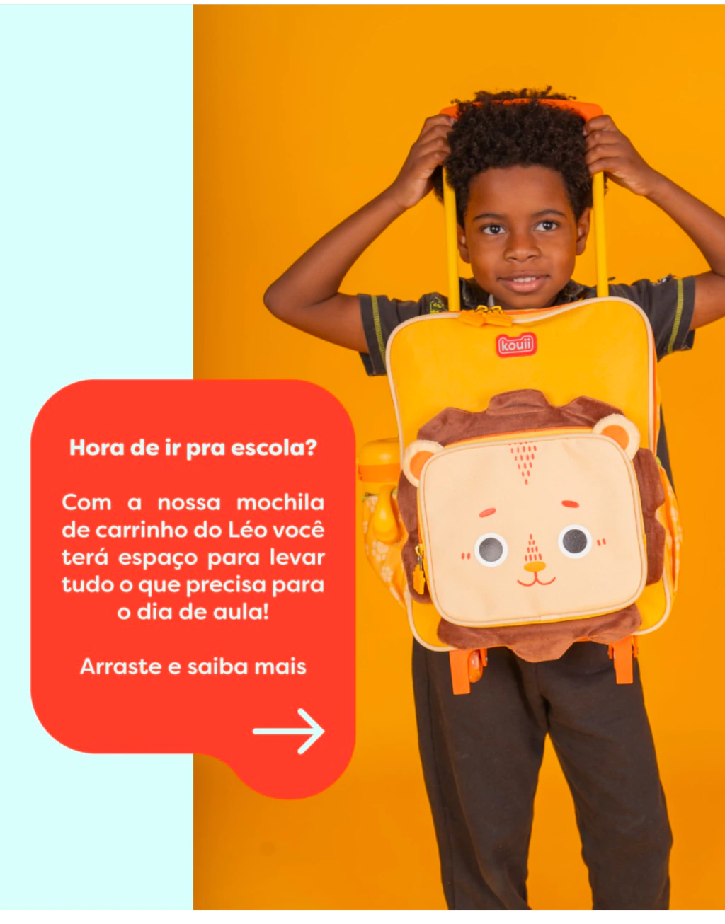 A Mochila Leão Carrinho é a combinação perfeita de praticidade e diversão para os pequenos. Com design encantador em forma de leão, ela traz um toque lúdico para os passeios do dia a dia. Feita com materiais resistentes e alças ajustáveis, oferece conforto e durabilidade, ideal para acompanhar aventuras escolares ou viagens. Além disso, o carrinho integrado facilita o transporte, tornando-a a escolha certa para famílias que valorizam estilo e funcionalidade.