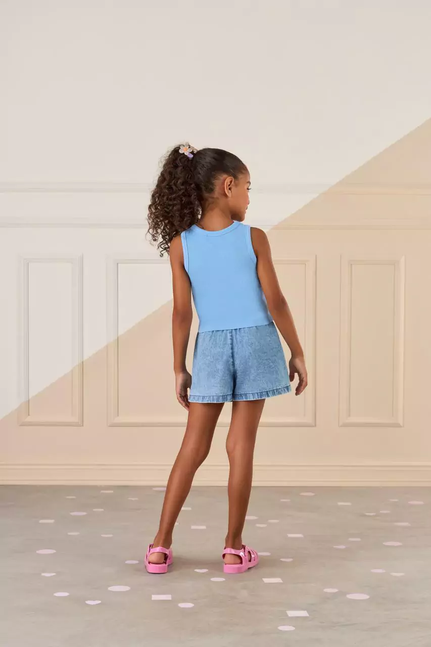 O jeans Mon Siucré de cintura alta é perfeito para trazer conforto e estilo ao look das pequenas. Com elástico na cintura, o shorts oferece praticidade e charme para diversas ocasiões. Os detalhes de babado no cós adicionam um toque lúdico, ideal para dias de verão, garantindo liberdade de movimento e muito estilo.