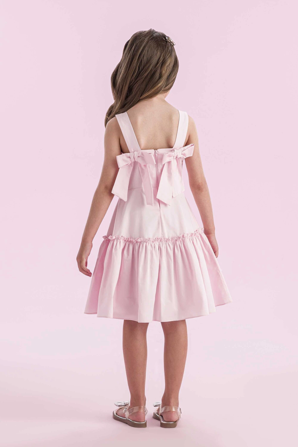 O vestido infantil Petit Cherie é a união perfeita entre sofisticação e conforto. Confeccionado em tecido leve e estruturado, possui modelagem evasê com saia rodada e detalhe franzido, garantindo movimento e charme. O busto é adornado com pedrarias delicadas e recortes sutis, que acrescentam um toque de brilho e elegância. Ideal para ocasiões especiais, proporciona um visual impecável para as pequenas brilharem com muito estilo.
