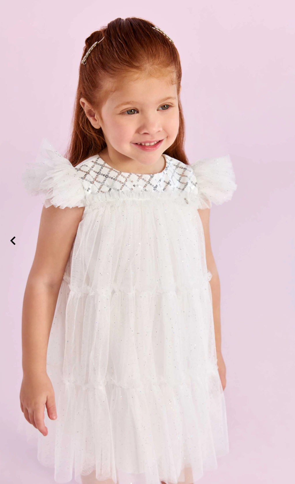 O vestido Petit Cherie é puro encanto e leveza em uma peça especial. Com busto bordado em desenho geométrico delicado e mangas em babadinhos de tule, ele traz uma proposta elegante e atemporal. A saia em camadas de tule com brilho sutil oferece um visual encantador, perfeito para ocasiões como festas, casamentos ou celebrações importantes. Um modelo que traduz o universo mágico da infância com sofisticação e charme, como só a Petit Cherie sabe fazer.O