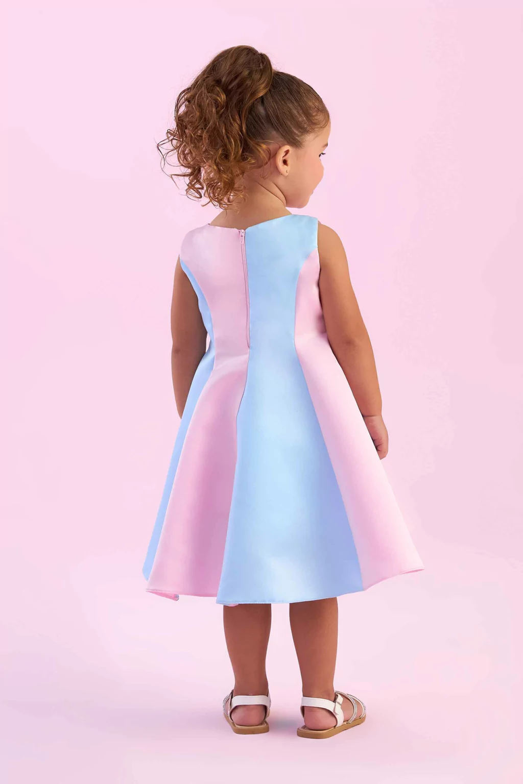 O vestido Petit Cherie bicolor é uma peça cheia de encanto e sofisticação. Com delicadas recortes em rosa e azul, adornadas com aplicações de pérolas, o vestido transmite um ar clássico e moderno ao mesmo tempo. Seu corte fluido e rodado oferece um caimento leve, garantindo o conforto das pequenas em todas as ocasiões. Ideal para festas e eventos, esse modelo combina elegância com o charme infantil, perfeito para um look inesquecível.